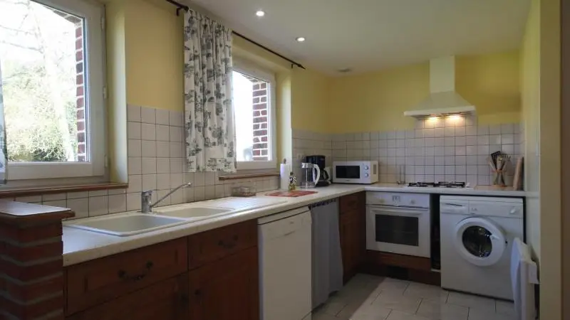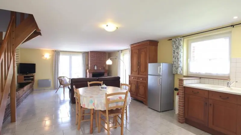 Ground floor: entrance, wc, large living room lit 2 glass, fireplace, TV screen flat, DVD, kitchen area (washing machine, dishwasher, microwave). Upstairs, 1 bedroom (1 bed 2 people) and 1 bedroom (2 beds 1 person, 1 bed + Chair), shower room/wc. Electric heating extra. Cleaning possible. City tax. In the village itself, shops and tennis court. 10 km Veules roses, 3 km large market House, and, between the cliffs, the supervised beaches (sand at low tide). Véloroute dulin to 1 km.